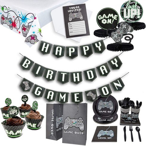 Video Game Themed Birthday Party Decorations : Video Game Controller Cake Topper Glitter Black Gaming Themed Kids Boy Girl Happy Birthday Party Decorations Double Sided Buy Online In Samoa At Samoa Desertcart Com Productid 174691174 - Fortnite birthday party ideas and decorations.. 4.5 out of 5 stars. Make it complete with video game party invitations, dinnerware, cutouts, and favors. Birthday party planning can be stressful, once you have a made a couple of gamer themed treats or games, keep the rest of the party as easy as possible. The arcade stand up backdrop the pac man cookies the joy stick cake pops the sonic golden ring doughnuts the mario mushroom muffins the. This was the easiest party setup with the party favors also serving as our decor.
